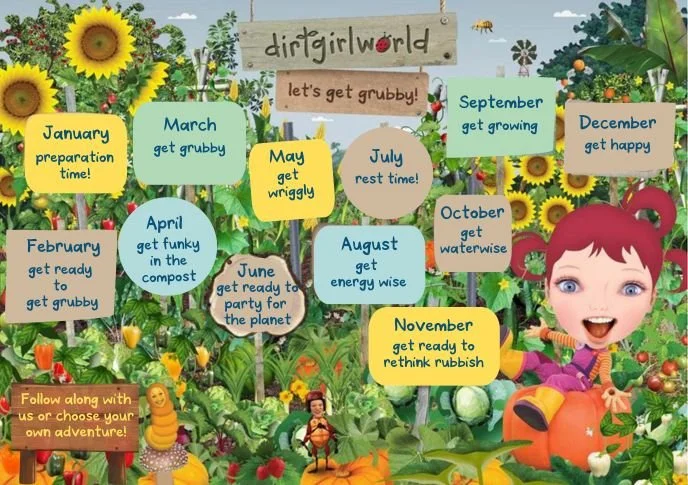 Emails from dirtgirl jam-packed with monthly themes and activities